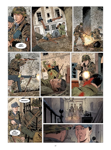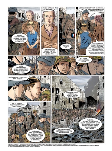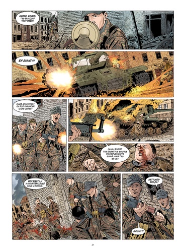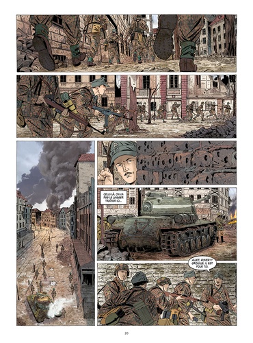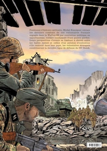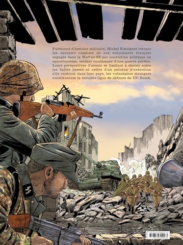 Avril-mai 1945... Les russes à l'est, les américains à l'ouest, Berlin est cerné de toute part. La ville n'est plus qu'un champs de ruine qui ne résiste que sur le courage de quelques militaires. Parmi ceux-ci, la Division Charlemagne, une armée constituée de combattants français, engagés volontaires au sein de la Wehrmacht. Ces égarés de l'histoire vont se retrouver en première ligne dans la défense de la ville, soldats de l'inutile face à l'inéxorable avancée des armées alliées. Michel Koeniguer raconte en trois parties la chute de Berlin et le destin singulier de soldats français en 1045. Pour la première fois en un seul volume, ce récit fort et puissant trouve ici un écrin à sa mesure.