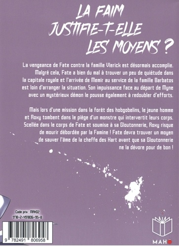 La vengeance de Fate contre la famille Ulerick est désormais accomplie. Malgré cela, Fate a bien du mal à trouver un peu de quiétude dans la capitale royale et l'arrivée de Memir au service de la famille Barbatos est loin d'arranger la situation. Son impuissance face au départ de Myne avec un mystérieux démon le pousse également à redoubler d'efforts. Riais lors d'une mission dans la forêt des hobgobelins, le jeune homme et Roxy tombent dans le piège d'un monstre qui intervertit leurs corps. 5cellée dans le corps de Fate et soumise à sa Gloutonnerie, Roxy risque de mourir débordée par la Famine ! Fate devra trouver un moyen de sauver l'âme de la cheffe des Hart avant que sa Gloutonnerie ne la dévore pour de bon !