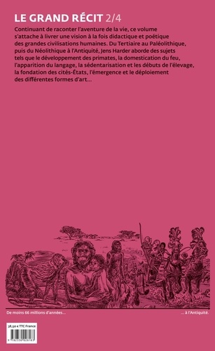 Continuant de raconter l'aventure de la vie, ce volume s'attache à livrer une vision à la fois didactique et poétique des grandes civilisations humaines. Du Tertiaire au Paléolithique, puis du Néolithique à l'Antiquité, Jens Harder aborde des sujets tels que le développement des primates, la domestication du feu, l'apparition du langage, la sédentarisation et les débuts de l'élevage, la fondation des cités-Etats, l'émergence et le déploiement des différentes formes d'art...