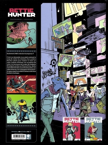 Chasseuse sachant chasser Seulement 2480 creds de récompense C'est à se demander si ça valait vraiment le coup de visiter les intestins d'un Lombris Stockus géant pour mettre la main sur le cette crapule de Himmel Mais pas le choix Pour être rentable dans le métier de chasseur de prime il faut ne jamais s'arrêter En acceptant de voler à la rescousse de la soeur de Madame Skraalgard perdue sur Minaria Prime elle s'est enfoncée dans un nouveau et profond bourbier Embarquez aux côtés de Bettie et harvey le robot dans un space opera survolté à l'univers riche et au bestiaire loufoque Piloté par deux auteurs inventifs à l'humour grinçant Bettie Hunter aborde avec panache les sujets indissociables que sont la différence et la tolérance Une aventure survoltée et tapageuse dans la veine des Gardiens de la Galaxie pop et bien plus dense que d'apparence