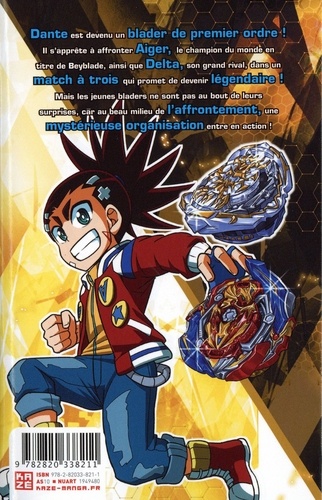 Dante est devenu un blader de premier ordre ! Il s'apprête à affronter Aiger, le champion du monde en titre de Beyblade, ainsi que Delta, son grand rival, dans un match à trois qui promet de devenir légendaire ! Mais les jeunes bladers ne sont pas au bout de leurs surprises, car au beau milieu de l'affrontement, une mystérieuse organisation entre en action !