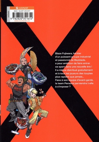 Blaze Fujiwara, héritier d'un puissant groupe industriel et passionné de Beyblade, a pour ambition de faire entrer ce sport dans une nouvelle ère ! Il a même distribué gratuitement et à tous les joueurs des toupies plus rapides que jamais... Face à son équipe d'avant-garde, la team Persona parviendra-t-elle à s'imposer ?