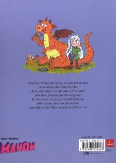 Dans la famille de Möun, on est éleveuses de licornes de mère en fille. Mais, elle, elle en a décidé autrement : elle sera dresseuse de dragons ! En duo avec la gloutonne Perséfone, elle n'aura peur de personne, pas même de l'abominable troll Grumfy !