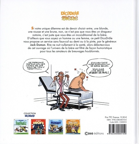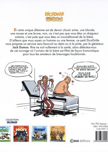 Si votre unique dilemme est de devoir choisir entre, une blonde, une rousse et une brune, non, ce n'est pas que vous êtes un dragueur notoire, c'est juste que vous êtes un inconditionnel de la bière. D'ailleurs que vous soyez un homme ou une femme, ce petit DicoDrôle vous propose un service sans faux-col au demi ou à la pinte, par le généreux Jack Domon. Rire ne nuit nullement à la santé, alors délectez-vous de cet ouvrage où l'univers de la bière est filtré de façon humoristique pour tous les amateurs de breuvages houblonnés.