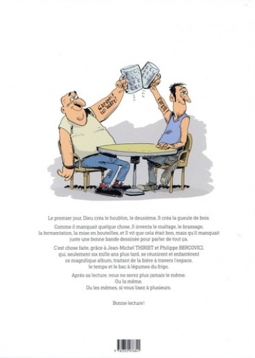 Le premier jour, Dieu créa le houblon, le deuxième, Il créa la gueule de bois. Comme il manquait quelque chose, Il inventa le maltage, le brassage, la fermentation, la mise en bouteilles, et Il vit que cela était bon, mais qu'il manquait juste une bonne bande dessinée pour parler de tout ça.