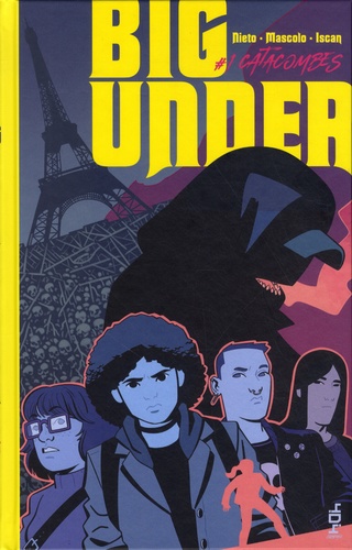 Paris est condamné depuis la nuit des temps, et les catacombes en sont la clé. Paris, hiver 1774. La terre tremble. Rue d'Enfer, c'est un pâté de maisons entier qui s'affaisse pour laisser place à un cratère géant. Contraint par l'état catastrophique des galeries et des carrières souterraines, Louis XVI fonde l'Inspection Générale des Carrières. Paris, printemps 2021. Sophie, fille de Pierre-Guillaume Alain-Serré, directeur actuel de l'Inspection Générale des Carrière, a disparu. Sa seule amie, Sonia, remarque son absence du lycée. Elle décide alors de convoquer trois autres ami. e. s : Dez, Berry et Kim pour tenter d'élucider ce mystère dont les catacombes parisienne semblent être le point de départ. Simultanément, Antoine part avec trois collègues étudier les éboulements survenus dans les galeries souterraines, à des emplacements historiques bien particuliers. Ces deux groupes vont plonger au coeur du bassin parisien qui pourrait s'avérer être bien plus qu'un simple bassin géologique. Big Under redonne à la ville de Paris son aura de mystère et de fantastique dans un environnement contemporain. Ce récit revendique sa filiation avec les séries françaises des années soixante tels Belphegor ou Les compagnons de Baal, tout autant que les récits adolescents des années quatre-vingt de John Hughes comme The Breakfast Club. Puisant chez Lovecraft l'indicible horreur poisseuse en sommeil dans les catacombes de Paris, cet aspect horrifique est contrebalancé par le dessin lumineux d'Alex Nieto (Locust, Beyond) et les couleurs de Fabiana Mascolo (Yasmeen, Firefly, Seven Secret). Virgile Iscan signe avec Big Under sa première bande dessinée.