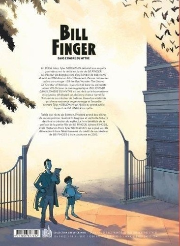 En 2006, Marc Tyler Nobleman débutait sa quête pour en savoir plus sur le co-créateur rarement cité de Batman. L'homme qui a créé la quasi-totalité de la mythologie entourant l'un des super-héros les plus emblématiques de l'histoire est mort dans la pauvreté en 1974. "Bill Finger, dans l'ombre du mythe" est un roman graphique sur la quête de Nobleman, c'est une histoire sur le traumatisme et la justice racontée à différents niveaux narratifs. Il y a la recherche de Nobleman, qui retrace la véritable histoire derrière le Chevalier Noir. Il y a ensuite l'histoire de Bill, sa rencontre avec Bob Kane, son travail et ses difficultés dans l'industrie de la bande dessinée, sa dépression alors que Kane, considéré comme l'unique créateur de Batman, est sous les feux de la rampe. Ensuite, il y a l'histoire du fils de Bill qui tente en vain de rétablir l'héritage de son père tout en luttant contre sa propre sexualité et, plus tard, contre le VIH. Enfin, il y a l'histoire d'Athena, la petite-fille de Bill, dont personne ne croit que son grand-père est le co-créateur de Batman. Fidèle aux récits de Batman, l'histoire prend des allures de roman policier révélant la tragique et véritable histoire derrière la création de Batman. Le livre bénéficie d'une préface de la petite-fille de Finger, Athena Finger, et de l'historien Marc Tyler Nobleman, qui a joué un rôle déterminant dans l'établissement du crédit de co-créateur de Finger à titre posthume en 2015.