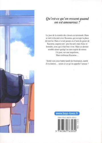 Le jour de la rentrée des classes en terminale, Haru se met à discuter avec Kazama, qui occupe la place devant lui. Haru n'avait jamais eu d'ami du genre de Kazama, auparavant : peu bavard, mais franc et honnête, avec qui il fait bon vivre. Mais ce dernier semble aimer quelqu'un sans espoir de retour. Un jour, sur une impulsion, Haru embrasse Kazama...
