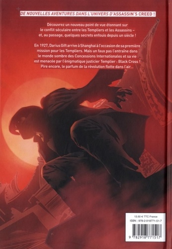 Découvrez un nouveau point de vue étonnant sur te conflit séculaire entre les Templiers et les Assassins - et, au passage, quelques secrets enfouis depuis un siècle ! En 1927, Darius Gift arrive à Shanghai à l'occasion de sa première mission pour les Templiers. Mais un faux pas l'entraîne dans le mondes Concessions Internationales et sa vie est menacée par l'énigmatique justicier Templier : Black Cross ! Pire encore, le parfum de la révolution flotte dans l'air...
