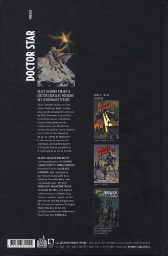Black Hammer présente doctor star & le royaume des lendemains perdus. Sous l'identité du Doter Star, James Robinson étais l'un des Plus grands compagnons d'armes de Black Hamme, Aujourd'hui, Il n'est plus qu'un vieil homme tentant désespérément de renouer avec son fils dont sa carrière de justicier l'aura toujours tenu à l'écart. Au crépuscule de sa vie, James se remémore la découverte de son pouvoir cosmique, ses exploits durant la Seconde Guerre mondiale et le naufrage de sa vie de famille...