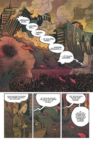 Lucy Weber, la fille du célèbre justicier Black Hammer, a bien grandi. Elle est désormais journaliste d'investigation et tente par tous les moyens de comprendre ce qui a pu arriver aux super-héros de Spiral City après leur affrontement contre l'Anti-Dieu. Tous les indices qu'elle a jusqu'ici pu recueillir semblent converger vers l'asile de la ville et ses dangereux locataires, parmi lesquels se trouvent certains des plus grands ennemis de son père... Lui permettront-ils de faire enfin la lumière sur son inexplicable disparition ?