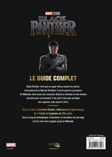 Black Panther n'est pas un super-héros comme les autres. Incarnation de la Déesse-Panthère, il est le guerrier protecteur du Wakanda, mais aussi son souverain. Quand un attentat et une menace extraterrestre surviennent, il est prêt à tout pour protéger son royaume, mais aussi la Terre, en rejoignant la plus grande équipe de super-héros, les Avengers. Dans ce guide richement illustré, redécouvrez le personnage de T'challa : son royaume, ses alliés, ses ennemis, le vibranium, etc.