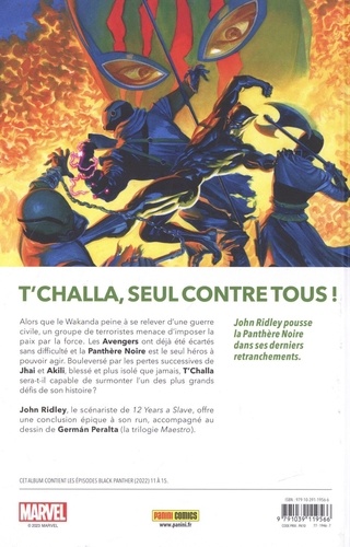 Les Avengers sont appelés à la rescousse ! Les systèmes de communication mondiaux ont été neutralisés par une force militante inconnue. Ces nouveaux ennemis sont des experts : équipés d'armes en vibranium, ils connaissent parfaitement chaque Avengers et savent exactement comment battre chacun d'eux, ce qui ne manque pas d'inquiéter T'Challa. L'identité du leader du groupe va bouleverser l'existence de la Panthère Noire ! Le réalisateur et scénariste John Ridley signe ici la fin de sa saga mettant en scène le Roi du Wakanda. Si T'Challa n'apparaîtra plus dans les films Marvel suite au décès du personnage et de son interprète Chadwick Boseman, il est toujours bien vivant dans les comics pour le plus grand plaisir des fans.