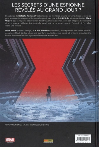 Black Widow s'échappe d'un héliporteur qui est poursuivi par le S. H. I. E. L. D. Comment une Avenger devient une fugitive ? La réponse se trouve dans le passé de Natasha Romanoff, et plus exactement, dans la Chambre Rouge... C'est le début d'une aventure qui va l'emmener à l'autre bout du monde. Réédition en Marvel Deluxe de l'intégralité de la série Marvel NOW ! , par les auteurs Mark Waid (Avengers, Champions) et Chris Samnee (Daredevil, Captain America). Les secrets d'une espionne révélés au grand jour ? L'existence de Natasha Romanoff est entourée de mystères. Quand certains de ses secrets les plus inavouables risquent d'être rendus publics et que le S.H.I.E.L.D. lui tourne le dos, Black Widow doit faire profil bas et tenter de retrouver ceux qui menacent son intégrité. Elle entame ainsi un voyage qui la ramène là où elle s'était juré de ne jamais revenir : l'endroit où l'on a fait d'elle une tueuse... Mark Waid (Doctor Strange) et Chris Samnee (Daredevil), récompensés aux Eisner Awards, entraînent Black Widow dans une aventure haletante, entre passé et présent, propulsant la bande dessinée d'espionnage vers de nouveaux sommets.