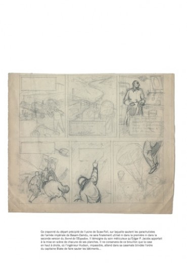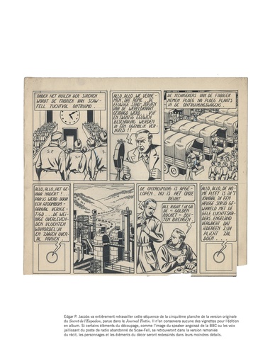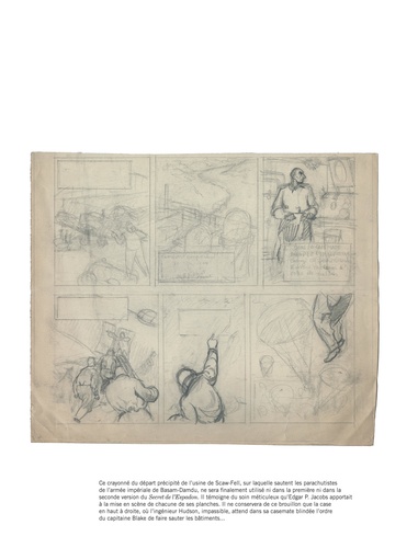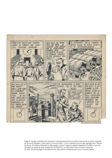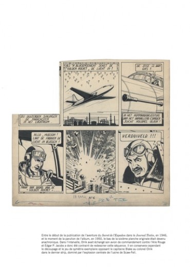 Le 26 septembre 1946, les lecteurs de Tintin découvraient la toute première page du Secret de l'Espadon. Soixante-quinze ans plus tard, celle-ci appartient à l'histoire de la bande dessinée. En effet, comme les dix-huit premières planches de cette aventure inaugurale, elle a largement été remaniée par Edgar P. Jacobs pour la parution en album. Plusieurs cases ont été redessinées, tandis que d'autres ont été purement et simplement supprimées, obligeant l'auteur à élaborer une nouvelle composition. Les textes des phylactères ont été réécrits. Le trait a été affiné, gagnant en précision et en lisibilité. Jacobs a donc procédé à un remaniement complet de ces premières pages qui seront d'ailleurs réduites à dix-sept dans l'album. Il a également ajouté une introduction qui ne figurait pas dans Tintin. La nouvelle édition du Secret de l'Espadon reprend l'intégralité des planches initialement publiées dans le journal Tintin. Elles ont été scannées à partir des numéros originaux de l'hebdomadaire, ce qui permet d'en redécouvrir les couleurs d'origine. Cette édition en deux volumes tirés chacun à 6000 exemplaires est agrémentée d'un dossier passionnant, piloté par Daniel Couvreur et comportant de nombreux documents inédits.