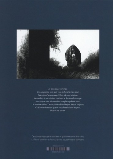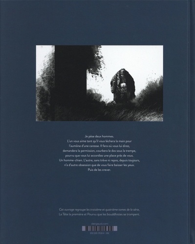 Je pèse deux hommes. L'un vous aime tant qu'il vous léchera la main pour l'aumône d'une caresse. Il fera où vous lui direz, demandera la permission, courbera le dos sous la trempe, pourvu que vous lui accordiez une place près de vous. Un homme-chien. L'autre, sans trêve ni repos, depuis toujours, n'a d'autre obsession que de vous faire baisser les yeux. Puis de les crever. Cet ouvrage regroupe les troisième et quatrième tomes de 10 série, La Tête la première et Pourvu que les bouddhistes se trompent.