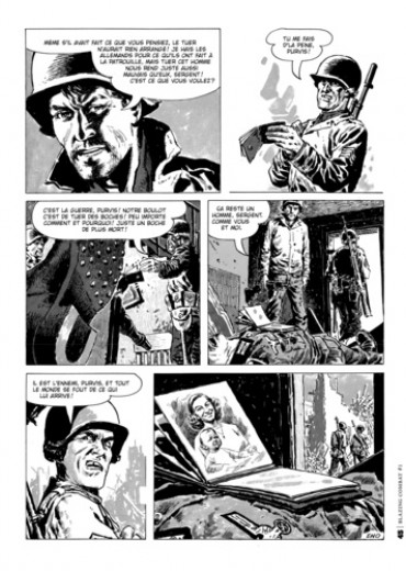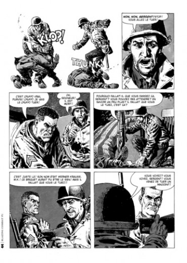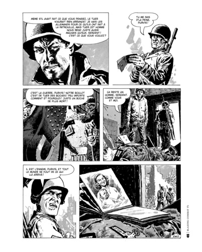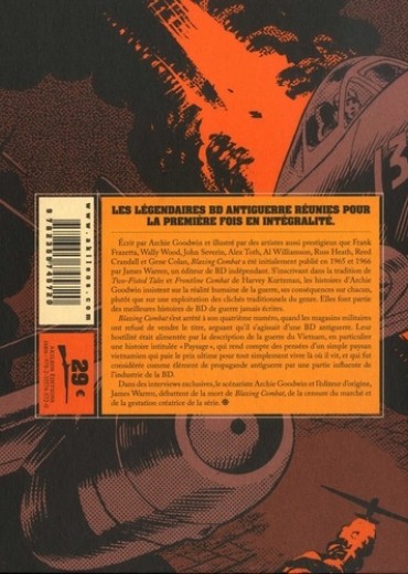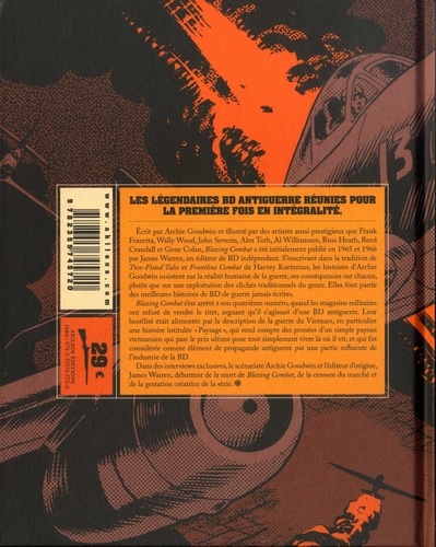 Ecrit par Archie Goodwin et illustré par des artistes aussi prestigieux que Frank Frazetta, Wally Wood, John Severin, Alex Toth, Al Williamson, Russ Heath, Reed Crandall et Gene Colan, Blazing Combat a été initialement publié en 1965 et 1966 par James Warren, un éditeur de BD indépendant. S'inscrivant dans la tradition de Two-Fisted Taler et Frontline Combat de Harvey Kurtzman, les histoires d'Archie Goodwin insistent sur la réalité humaine de la guerre, ses conséquences sur chacun, plutôt que sur une exploitation des clichés traditionnels du genre. Elles font partie des meilleures histoires de BD de guerre jamais écrites. Blazing Combat s'est arrêté à son quatrième numéro, quand les magasins militaires ont refusé de vendre le titre, arguant qu'il s'agissait d'une BD antiguerre. Leur hostilité était alimentée par la description de la guerre du Vietnam, en particulier une histoire intitulée "paysage", qui rend compte des pensées d'un simple paysan vietnamien qui paie le prix ultime pour tout simplement vivre là où il vit, et qui fur considérée comme élément de propagande antiguerre par une partie influente de l'industrie de la BD. Dans des interviews exclusives,le scénariste Archie Goodwin et l'éditeur d'origine James Warren, débattent de la mort de Blazing Combat, de la censure du marché et de la gestation créatrice de la série.