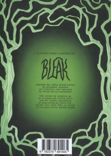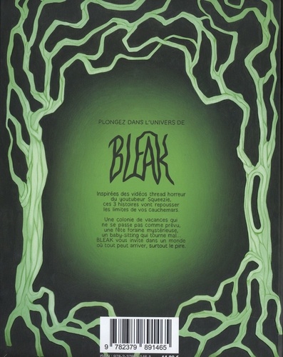Inspirées des vidéos thread horreur du youtubeur Squeezie, ces trois histoires vont repousser les limites de vos cauchemars. Une colonie de vacances qui ne se passe pas comme prévu, une fête foraine mystérieuse, un baby-sitting qui tourne mal... BLEAK vous invite dans un monde où tout peut arriver, surtout le pire.