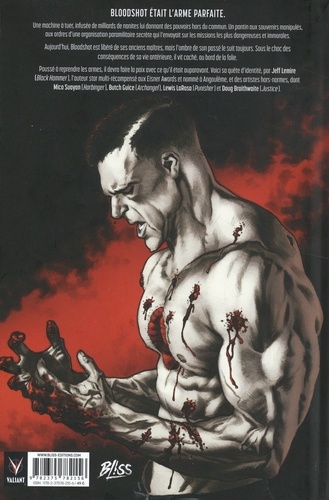Bloodshot était l'arme parfaite. Une machine à tuer, infusée de milliards de nanites lui donnant des pouvoirs hors du commun. Un pantin aux souvenirs manipulés, aux ordres d'une organisation paramilitaire secrète qui l'envoyait sur les missions les plus dangereuses et immorales. Aujourd'hui, Bloodshot est libéré de ses anciens maîtres, mais l'ombre de son passé le suit toujours. Sous le choc des conséquences de sa vie antérieure, il vit caché, au bord de la folie. Poussé à reprendre les armes, il devra faire la paix avec ce qu'il était auparavant. Voici sa quête d'identité, par Jeff Lemire (Black Hammer), l'auteur star multi-récompensé aux Eisner Awards et nommé à Angoulême, et des artistes hors-normes, dont Mico Suayan (Harbinger), Butch Guice (Archangel), Lewis LaRosa (Punisher) et Doug Braithwaite (Justice).