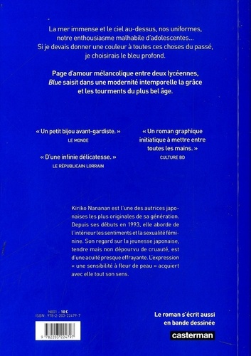 La mer immense et le ciel au-dessus, nos uniformes, notre enthousiasme malhabile d'adolescentes... Si je devais donner une couleur à toutes ces choses du passé, je choisirais le bleu profond. Blue saisit dans une modernité intemporelle la grâce et les tourments du plus bel âge.