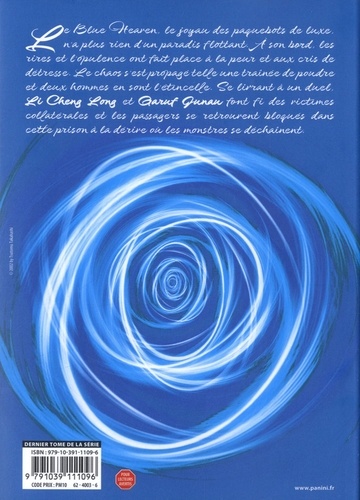 Une traversée infernale pour ce qui aurait dû être un voyage paradisiaque ! La panique s'est emparée des passagers du Blue Heaven qui assistent impuissants au combat entre Li Cheng Long et Garuf Junau. Pour ces deux tueurs, il n'y a plus qu'une alternative possible. Tué ou être tué peu importe les dommages collatéraux ! Avec Blue Heaven, Tsutomu Takahashi (Neun, Sidooh) nous plonge dans un thriller haletant et oppressant. Au coeur d'un bateau de croisière, lieu censé être propice à la joie et à la détente, se déroule une intense traque où les rôles de prédateurs et de proies s'inversent constamment. Un manga où les monstres s'amusent pendant que les civils se cachent. Takahashi n'offre pas non plus de répit à ses lecteurs qui n'ont pas le temps de souffler !