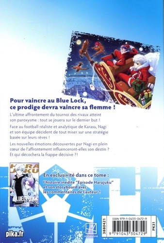 L'ultime affrontement du tournoi des rivaux atteint son paroxysme : tout se jouera sur le dernier but ! Face au football réaliste et analytique de Karasu, Nagi et son équipe décident de tout miser sur une stratégie basée sur leurs rêves ! Les nouvelles émotions découvertes par Nagi en plein coeur de l'affrontement influenceront-elles son destin ? Et qui décochera la frappe décisive ? ! Pour vaincre au Blue Lock, ce prodige devra vaincre sa flemme !