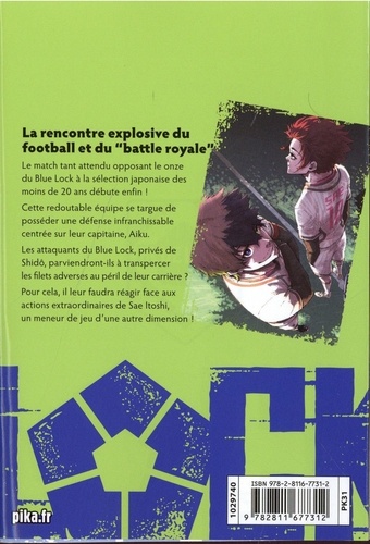 Le match tant attendu opposant le onze du Blue Lock à la sélection japonaise des moins de 20 ans débute enfin ! Cette redoutable équipe se targue de posséder une défense infranchissable centrée sur leur capitaine, Aiku. Les attaquants du Blue Lock, privés de Shidô, parviendront-ils à transpercer les filets adverses au péril de leur carrière ? Pour cela, il leur faudra réagir face aux actions extraordinaires de Sae Itoshi, un meneur de jeu d'une autre dimension !