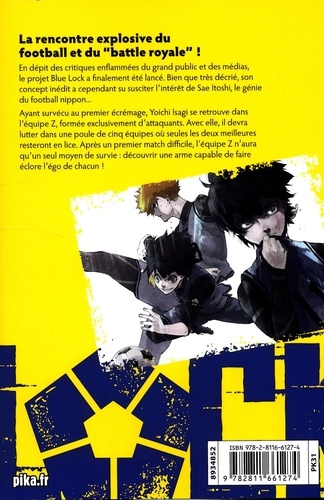 En dépit des critiques enflammées du grand public et des médias, le projet Blue Lock a finalement été lancé. Bien que très décrié, son concept inédit a cependant su susciter l'intérêt de Sae Itoshi, le génie du football nippon... Ayant survécu au premier écrémage, Yoichi Isagi se retrouve dans l'équipe Z, formée exclusivement d'attaquants. Avec elle, il devra lutter dans une poule de cinq équipes où seules les deux meilleures resteront en lice. Après un premier match difficile, l'équipe Z n'aura qu'un seul moyen de survie : découvrir une arme capable de faire éclore l'égo de chacun !