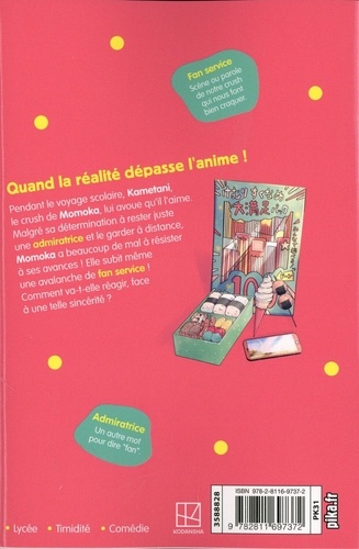 Pendant le voyage scolaire, Kametani, le crush de Momoka, lui avoue qu'il l'aime. Malgré sa détermination à rester juste une admiratrice et le garder à distance, Momoka a beaucoup de mal à résister à ses avances ! Elle subit même une avalanche de fan service ! Comment va-t-elle réagir, face à une telle sincérité ?