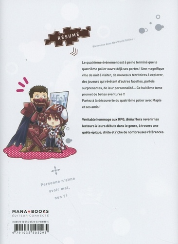 Le quatrième événement est à peine terminé que le quatrième palier ouvre déjà ses portes ! Une magnifique ville de nuit à visiter, de nouveaux territoires à explorer, des joueurs qui révèlent d'autres facettes, parfois surprenantes, de leur personnalité... Ce huitième tome promet de belles aventures !! Partez à la découverte du quatrième palier avec Maple et ses amis ! Véritable hommage aux RPG, Bofuri fera revenir les lecteurs à leurs débuts dans le genre, à travers une quête épique, drôle et riche de nombreuses références.