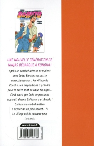 Après un combat intense et violent avec Code, Boruto ressuscite miraculeusement. Au village de Konoha, les dispositions à prendre pour la suite sont au coeur du sujet... C'est alors que Code en personne apparaît devant Shikamaru et Amado ! Shikamaru va-t-il mettre à exécution un plan secret... ? ! Le village est de nouveau sous tension !!