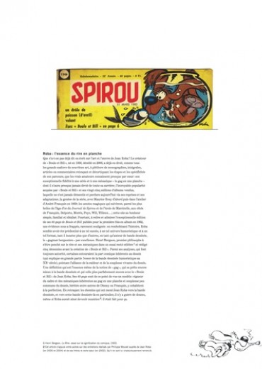 Boule et Bill est la série-phare de Jean Roba qui la dessina pendant des décennies en la renouvelant sans cesse, en toute discrétion ! Une exceptionnelle fidélité à une série et à une mécanique ? le gag en une planche ? dont ce géant de la BD franco-belge n'a presque jamais dévié durant toute sa carrière. Et que dire de l'incroyable popularité acquise par Boule et Bill et ses vingt-cinq millions d'albums vendus, laquelle ne s'est jamais démentie et perdure aujourd'hui via ses reprises et ses adaptations. Roba et Boule et Bill participent avec force à l'âge d'or du journal Spirou et de l'école de Marcinelle, aux côtés de Franquin, Morris, Peyo, Tillieux et quelques autres. Les soixante premiers gags de cette ode au bonheur simple, familial et idéalisé sont, pour la première fois, édités en reproduisant les planches originales en fac-similés, au format original !
