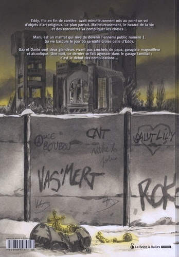 Eddy, flic en fin de carrière, avait minutieusement mis au point un vol d'objets d'art religieux. Le plan parfait. Malheureusement, le hasard de la vie et des rencontres va compliquer les choses... Manu est un malfrat qui rêve de devenir l'ennemi public numéro 1. Sa vie bascule le jour où sa route croise celle d'Eddy. Gaz et Dante sont deux glandeurs vivant aux crochets de papa, garagiste magouilleur et alcoolique. Une nuit, ce dernier se fait agresser dans le garage familial : c'est le début des complications...