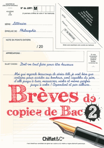 Le premier tome s'est vendu à 6 600 exemplaires et a eu une très bonne presse. Chaque année, nombreux sont les correcteurs qui relèvent les petits bijoux de naïveté, de poésie et d'incompréhension qu'ils découvrent à la lecture des copies des futurs bacheliers... Les perles sont nombreuses, les erreurs qui fleurissent sur ces copies ne sont pas seulement liées à l'ignorance des éléves ! On peut relever des erreurs liées au stress de ce premier examen d'envergure, des erreurs liées à une mauvaise lecture des consignes, et bien sûr les récurentes fautes d'orthographe et de grammaire. On trouve aussi des démonstration hasardeuses (notamment en philo) qui ne veulent rien dire et qui servent seulement à mettre en lumière la méconnaissance totale du sujet par l'élève... Elles nous rappellent des erreurs qu'on a faites ou qu'on aurait pu faire... et puis après tout il vaut mieux en rire !