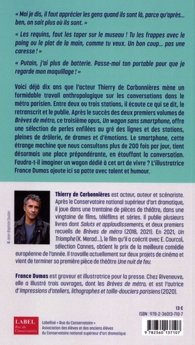 Troisième recueil de brèves de métro, avec drôlerie et humanité, ce Dernier Wagon apporte son lot de tranches de vie et de bons mots volés, croqués aussi dans les illustrations in situ. Une proposition aussi pour sortir de l'individualisme des smartphones : réserver le dernier wagon à la conversation ! - Le troisième volet d'une trilogie de "brèves de métro" pleines d'humour et d'humanité piquées dans les conversations dans le métro par l'acteur Thierry de Carbonnières - Une véritable chronique anthropologique de la conversation en milieu fermé à l'époque contemporaine - Une proposition originale face au règne du smartphone et du repli sur soi dans les rames : dédier le dernier wagon à la conversation pour ceux qui veulent parler et échanger pendant leur transport. - Un ouvrage illustré avec talent par l'artiste France Dumas.