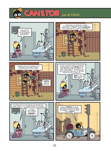 Bricolage et batifolage Pris en tenaille entre une petite amie complètement cruche et une soeur acariâtre, Canetor le canard trouve refuge dans sa seule passion : le bricolage. Une activité pour laquelle il montre un certain talent, il faut le reconnaître, et qui va former le point de départ d'une romance pour le moins étonnante... Entre scènes du quotidien à l'ironie mordante, rêveries délirantes dignes de Little Nemo et dialogues absurdes, suivez le quotidien de cet alter ego introverti de Donald en compagnie d'une galerie de personnages truculents dans un univers parodique, explorant l'envers du décor de l'âge d'or du cartoon américain. Michel Pirus (Le Roi des mouches) donne une suite aux aventures de Canetor, personnage qu'il avait cocréé avec Charlie Schlingo et qui avait connu un album aux Requins Marteaux. Un petit bijou de second degré qui fait autant rire qu'il nous met mal à l'aise et dans lequel l'auteur nous montre que son talent ne se limite pas à l'écriture. Moins ronde mais tout aussi sublime que dans Rose profond, sa ligne claire faussement naïve et hautement stylisée évoque les oeuvres de Chris Ware, en même temps qu'un certain héritage de Disney. Un livre très beau et très drôle... tout simplement indispensable !