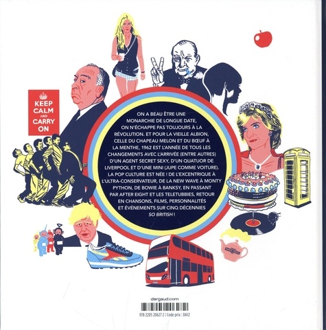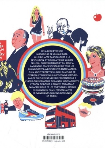 Un "petit livre" axé sur la pop culture anglaise depuis 1962 lorsque le pays entame sa révolution ! Car c'est bien en 1962, il y a 60 ans et des poussières - que la vieille Albion, celle de la monarchie, du boeuf à la menthe et du chapeau melon a pris un virage résolument moderne, grâce à un agent secret sexy, un groupe de Liverpool, et une mini (jupe et voiture). De l'excentrique à l'ultra-conservateur, de James Bond à Astrazeneca, de Bowie à Banksy, en passant par After Eight et les Teletubbies...