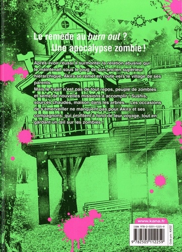 Après avoir réussi à surmonter la relation abusive qui le maintenait sous le joug de son ancien supérieur hiérarchique, Akira se remet en route vers le village de ses parents. Mais le trajet n'est pas de tout repos, peuplé de zombies et semé de nouvelles missions à accomplir ! Sushis, sources chaudes, maison dans les arbres... Les occasions de s'émerveiller ne manquent pas pour Akira et ses compagnons, qui profitent à fond de leur voyage, tout en gardant un oeil sur les zombies !