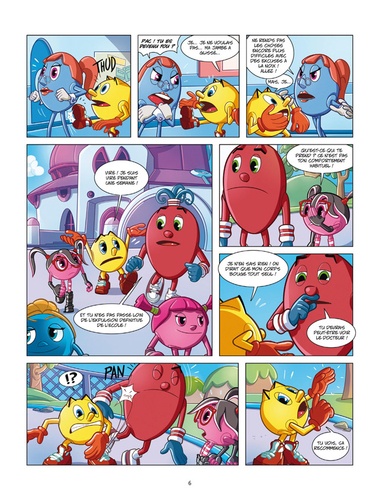 Pac-Man, personnage culte, a enfin sa BD d'aventures avec gags et histoires courtes ! On l'y voit combattre Perfidus, l'affreux seigneur du monde des ténèbres, et défendre le monde contre les fantômes. Mais aussi rire avec ses amis, galérer en cours de maths et manger des pac-gommes. Le héros du jeu vidéo revient avec un dessin animé et SURTOUT une BD pleine de gags ! A dévorer sans modération !