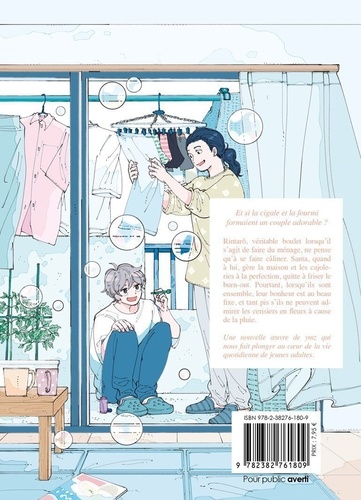 Et si la cigale et la fourmi formaient un couple adorable ? Rintarô, véritable boulet lorsqu'il s'agit de faire du ménage, ne pense qu'à se faire câliner. Santa, quand à lui, gère la maison et les cajoleries à la perfection, quitte à friser le burn-out. Pourtant, lorsqu'ils sont ensemble, leur bonheur est au beau fixe, et tant pis s'ils ne peuvent admirer les cerisiers en fleurs à cause de la pluie.