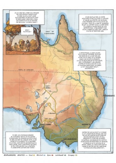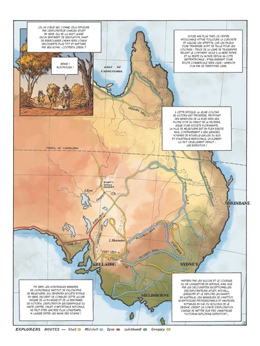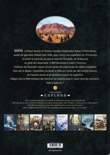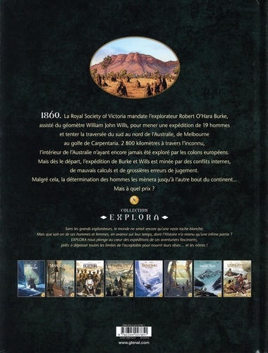 La première traversée de l'Australie ! En 1860, la Royal Society of Victoria mandate l'explorateur Robert O'Hara Burke, assisté du géomètre William John Wills, pour mener une expédition de 18 hommes et tenter la traversée du sud au nord de l'Australie, de Melbourne au golfe de Carpenterie. 2 800 kilomètres à travers l'inconnu, l'intérieur de l'Australie n'ayant encore jamais été exploré par les colons européens. Mais dès le départ, l'expédition de Burke et Wills est minée par des conflits internes, de mauvais calculs et de grossières erreurs de jugements. Malgré cela, la détermination des hommes les mènera jusqu'à l'autre bout du continent... Mais à quel prix ? La collection "Explora" raconte l'expédition de Burke et Wills, première traversée méridionale de l'Australie qui se finira en tragédie. Entre tensions internes, rencontres avec les Aborigènes, désert aride et marécage hostile, revivez une traversée aussi difficile que fascinante, une aventure humaine à la découverte d'un nouveau monde.