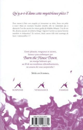 Entre jalousie, vengeance et secrets, laissez-vous embarquer par Burn the House Down, un manga haletant qui, au fil de ses nombreux rebondissements, ne cessera de vous surprendre ! Pour mener à bien son enquête et innocenter sa mère, Anzu est prête à tout ! Mais en montant l'escalier interdit, elle ne s'attendait pas à découvrir l'un des secrets les mieux gardés de Makiko Mitarai : l'un de ses fils, devenu asocial, vit cloîtré à l'étage ! Qu'est-il arrivé à ce jeune homme autrefois si chaleureux ? Et surtout, Anzu saura-t-elle tirer avantage de leurs " retrouvailles " ?