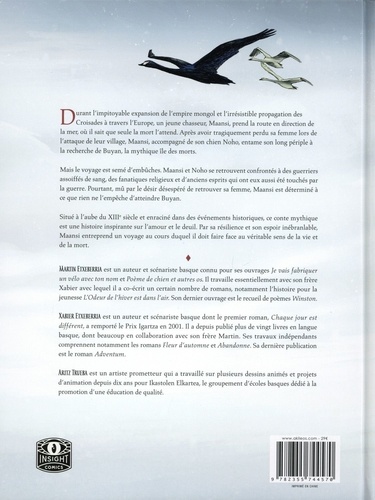 Durant l'impitoyable expansion de l'empire mongol et l'irrésistible propagation des Croisades à travers l'Europe, un jeune chasseur, Maansi, prend la route en direction de la mer, où il sait que seule la mort l'attend. Après avoir tragiquement perdu sa femme lors de l'attaque de leur village, Maansi, accompagné de son chien Noho, entame son long périple à la recherche de Buyan, la mythique île des morts. Mais le voyage est semé d'embûches. Maansi et Noho se retrouvent confrontés à des guerriers assoiffés de sang, des fanatiques religieux et d'anciens esprits qui ont eux aussi été touchés par la guerre. Pourtant, mû parle désir désespéré de retrouver sa femme, Maansi est déterminé à ce que rien ne l'empêche d'atteindre Buyan. Situé à l'aube du XIIIe siècle et enraciné dans des événements historiques, ce conte mythique est une histoire inspirante sur l'amour et le deuil. Par sa résilience et son espoir inébranlable, Maansi entreprend un voyage au cours duquel il doit faire face au véritable sens de la vie et de la mort.