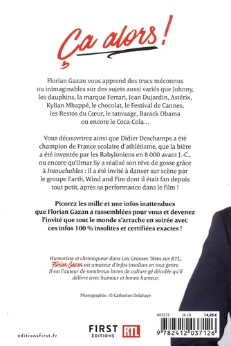 Florian Gazan vous apprend des trucs méconnus ou inimaginables sur des sujets aussi variés que Johnny, les dauphins, la marque Ferrari, Jean Dujardin, Astérix, Kylian Mbappé, le chocolat, le Festival de Cannes, les Restos du Coeur, le tatouage, Barack Obama ou encore le Coca-Cola... Vous découvrirez ainsi que Didier Deschamps a été champion de France scolaire d'athlétisme, que la bière a été inventée par les Babyloniens en 8 000 avant J.-C., ou encore qu'Omar Sy a réalisé son rêve de gosse grâce à Intouchables : il a été invité à danser sur scène par le groupe Earth, Wind and Fire dont il était fan depuis tout petit, après sa performance dans le film ! Picorez les mille et une infos inattendues que Florian Gazan a rassemblées pour vous et devenez l'invité que tout le monde s'arrache en soirée avec ces infos 100 % insolites et certifiées exactes !