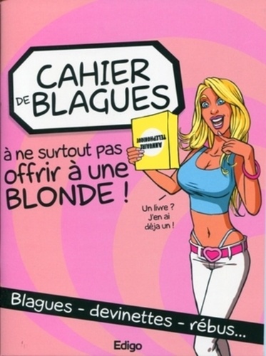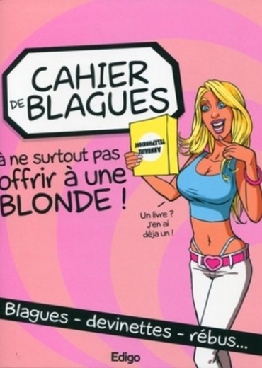 Voilà un cahier qu'il ne vaut mieux pas offrir à une blonde... Ce recueil de blagues compile tous les clichés du genre, pour des heures de franche rigolade ! Près de 150 blagues ayant pour thème les blondes. A ne pas mettre entre toutes les mains !