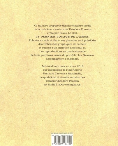 Ce numéro propose le dernier chapitre inédit de la treizième aventure de Théodore Poussin créée par Frank Le Gall, Le dernier voyage de L'Amok. Publiées en noir et blanc, ces planches sont précédées des recherches graphiques de l'auteur et suivies d'un entretien avec celui-ci. Les reproductions en quadrichromie de trois peintures issues du portfolio Les Moussons accompagnent l'ensemble.