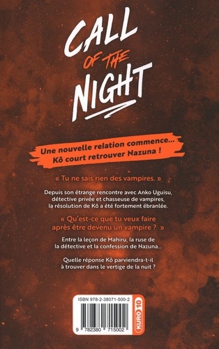En une rencontre, la vie peut reprendre du mordant ! Une nouvelle relation commence... Kô court retrouver Nazuna ! Depuis son étrange rencontre avec Anko Uguisu, détective privée et chasseuse de vampires, la résolution de Kô a été fortement ébranlée. Entre la leçon de Mahiru, la ruse de la détective et la confession de Nazuna... Quelle réponse Kô parviendra-t-il à trouver dans le vertige de la nuit ?