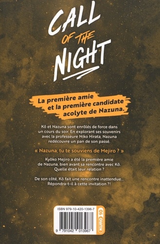 En une rencontre, la vie peut reprendre du mordant ! La première amie et la première candidate acolyte de Nazuna. Kô et Nazuna sont enrôlés de force dans un cours du soir. En explorant ses souvenirs avec la professeure Niko Hirata, Nazuna redécouvre un pan de son passé. " Nazuna, tu te souviens de Mejiro ? " Kyôko Mejiro, a été la première amie de Nazuna bien avant sa rencontre avec Kô. Quelle était leur relation ? De son côté, Kô fait une rencontre inattendue... Répondra-t-il à cette invitation ? !