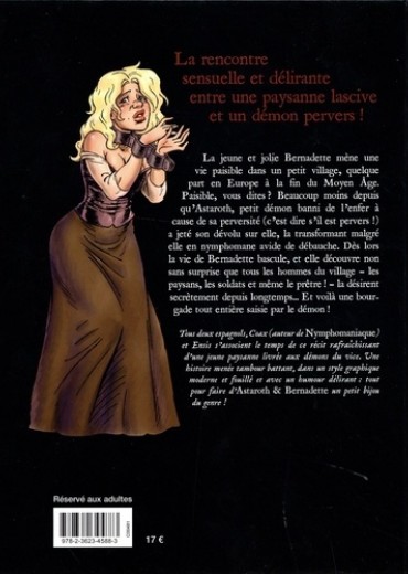 La jeune et jolie Bernadette mène une vie paisible dans un petit village, quelque part en Europe à la fin du Moyen Age. Paisible, vous dites ? Beaucoup moins depuis qu'Astaroth, petit démon banni de l'enfer à cause de sa perversité (c'est dire s'il est pervers ! ) a jeté son dévolu sur elle, la transformant malgré elle en nymphomane avide de débauche. Dès lors la vie de Bernadette bascule, et elle découvre non sans surprise que tous les hommes du village - les paysans, les soldats et même le prêtre ! - la désirent secrètement depuis longtemps... Et voilà une bourgade tout entière saisie par le démon ! Réservé aux adultes 17