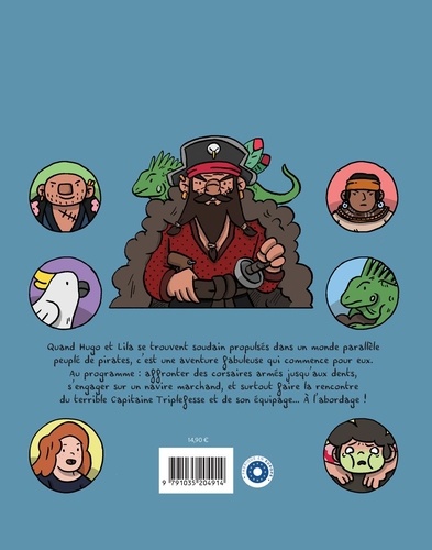 Quand Hugo et Lila se trouvent soudain propulsés dans un monde parallèle peuplé de pirates, c'est une aventure fabuleuse qui commence pour eux. Au programme : affronter des corsaires armés jusqu'aux dents, s'engager sur un navire marchand, et surtout faire la rencontre du terrible Capitaine Triplefesse et de son équipage... A l'abordage !